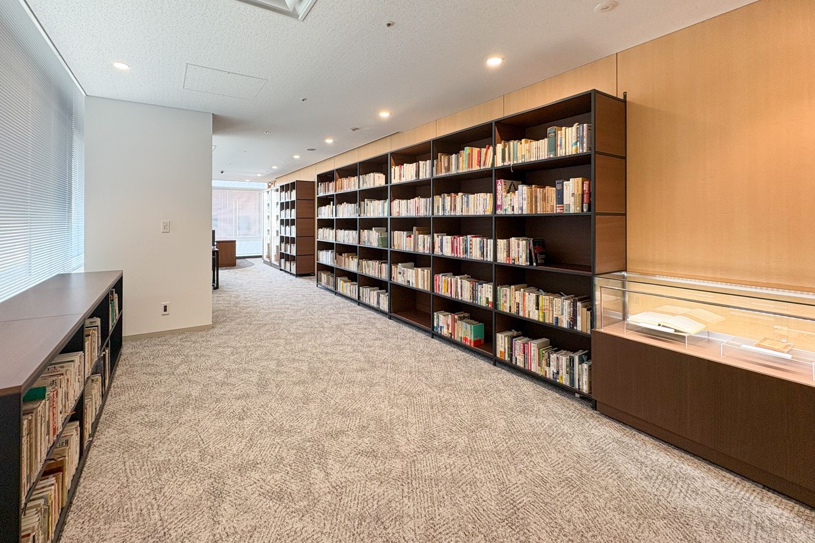 学生時代から哲学に傾倒した渡辺氏が、特に精神的支柱としたカントの著作をはじめ、多数の書籍が展示、保管されています。また、渡辺氏が愛用した執務机の実物が移設され、資料閲覧の際に使用できるようになっています。